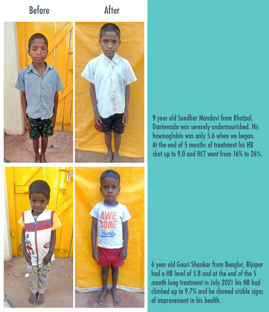 The first batch consisted of of 31 children from Korkoti, Bhatpal and Benglur villages and has been completed successfully. Below are the cases of 2 children that were part of the first batch.