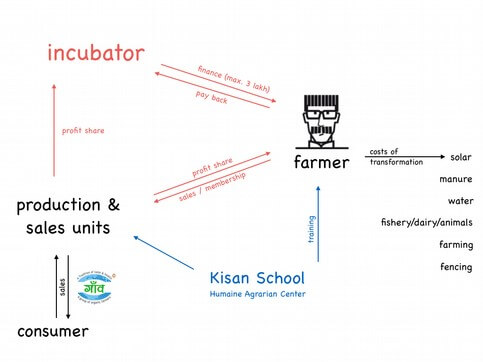 The goal of the incubator is to give financial help to farmers who are ready to change their way of farming to Aavartansheel Kheti. The plan is to fund over 5 years 500 farmers with a maximum of Rs. 3,00.000 per farmer at 0% interest rate. The incubator will help the farmers in the following: